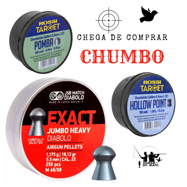 🥈 10 CAIXAS DE CHUMBO 5.5 ROSSI POMBA 🥉 10 CAIXAS DE CHUMBO 5.5 ROSSI HOLLOW POINT